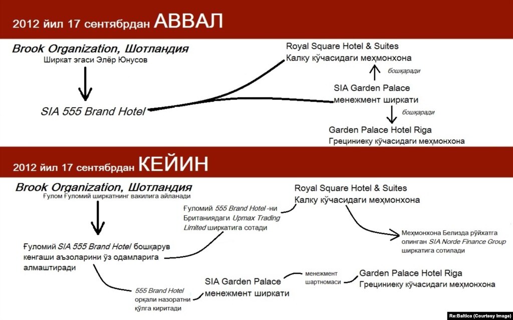 Схема, по которой гостиницы Абдуллаева переходили в руки Гулами.