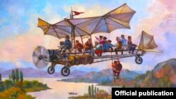 Так на одной из картин сказочный кукольник летает над долинами на самодельном аэроплане, прихватив соседских ребятишек, чтобы они с радостью смотрели на все, что дарит им природа, и верили, что живут в красоте на чудесной земле.