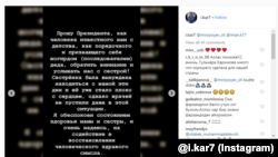 «Прошу Президента, как человека известного нам с детства, как порядочного и признающего себя шогирдом (последователем) деда, обратить внимание и услышать нас с сестрой! Сестренка была вынуждена находиться с мамой эти дни и ей уже стало плохо с сердцем, однако врачей не пустили даже в этой ситуации. Я обеспокоен состоянием здоровья мамы и сестры, и очень надеюсь на содействие в восстановлении человеческого здравого смысла», – написал на своей странице в Instagram’е старший внук ныне покойного президента Узбекистана Ислама Каримова.