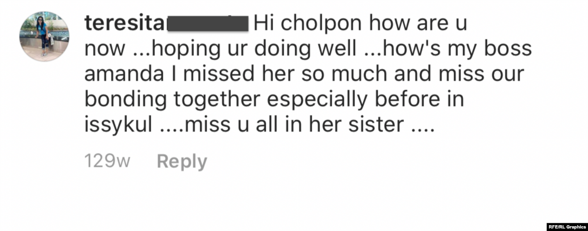 В июне 2017 Тересита прокомментировала ныне удаленный пост в Instagram гражданки Кыргызстана Чолпон Медеровой, которая часто появляется на фотографиях вместе с Тургуновой. В комментарии женщина написала, что скучает по своей «начальнице Аманде», и спросила, как у нее дела: