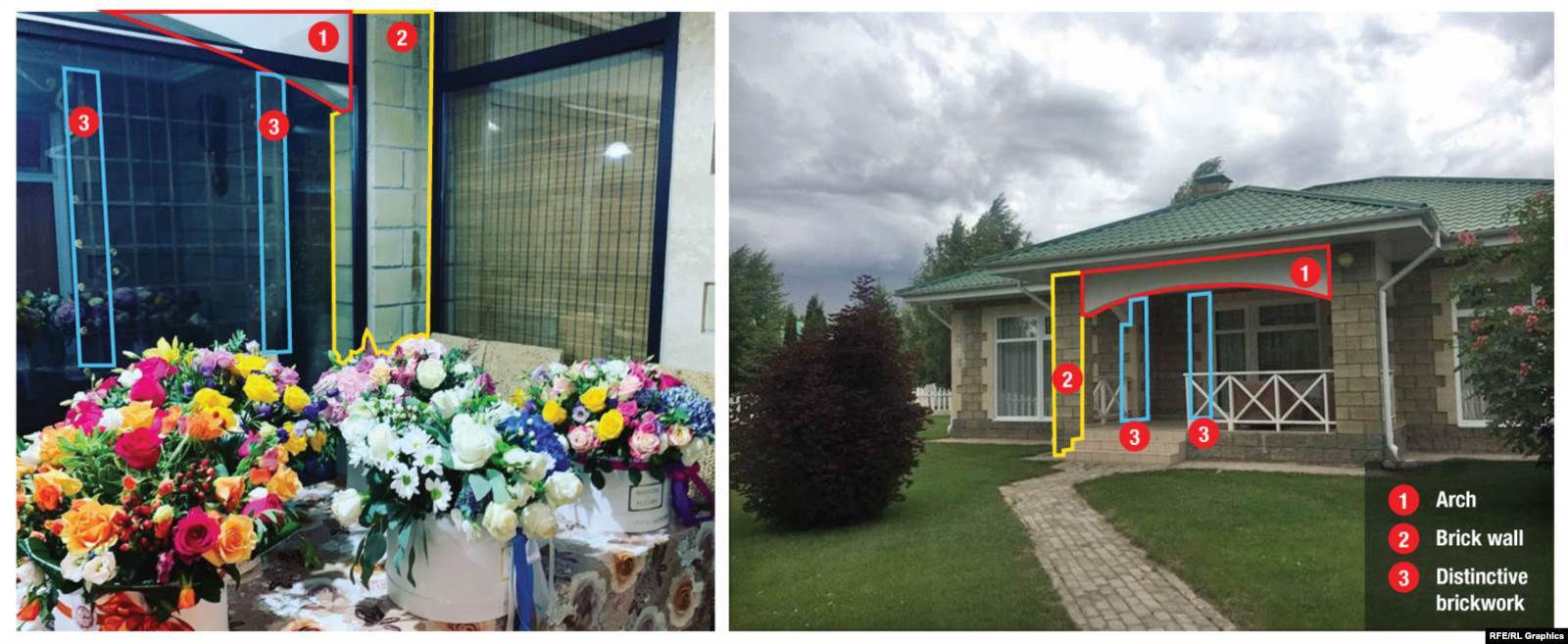 На то указывают и другие фото, размещенные Тургуновой в Instagram прошлым летом. Кирпичная кладка попавшей на снимок стены точно такая же, как на фото Медеровой за несколько лет до этого. Желтые кирпичи, характерная кладка и белая арка — архитектурные особенности, типичные для домов в курортном комплексе «Карвен» (справа от объявления). Кроме того, встроенная под белой аркой стеклянная стена – это переделка, которой нет в съемных коттеджах. Это позволило предположить, что дом в собственности Матраимовых.