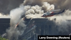 Спустя несколько мгновений густой дым от пожара и пепел заполнили все улицы.