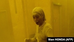 Одна из выживших после обрушения Южной башни – Марси Бордерс – укрывается в офисном здании.